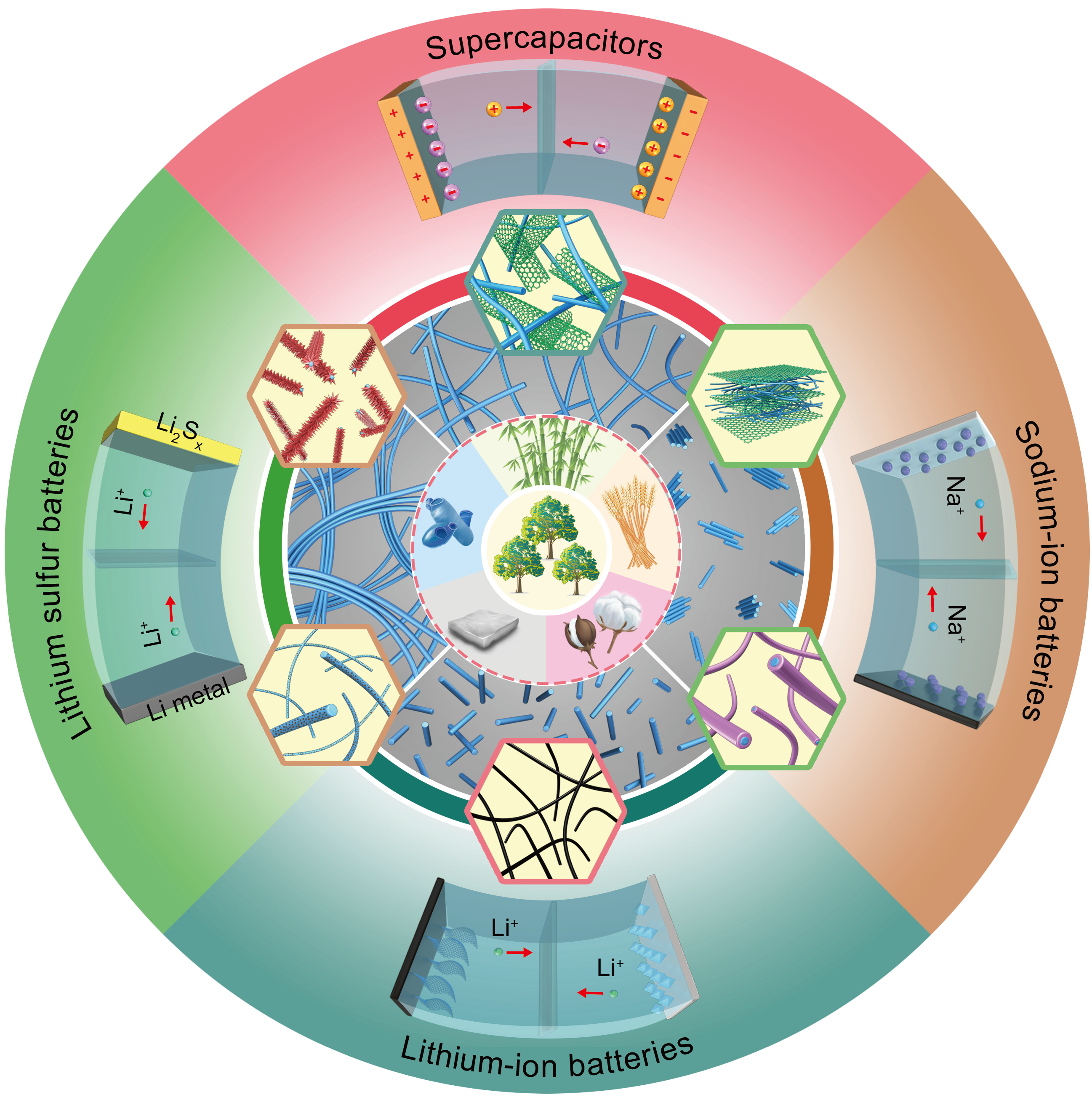 文章主题围绕近年来材料科学领域新兴的一种可持续纳米材料——纳米纤维素展开。这一材料主要源于木材、竹材、农作物秸秆等可再生资源,是支撑树木的最基本构筑单元,具有高结晶度、高强度、高比表面积等优点,近年来已在能量储存领域得到广泛关注。该项工作结合合作团队的研究进展,从树木等林业资源的纤维素纳米结构、不同结构与表面化学性能的纳米纤维素的制备策略、纳米纤维素及其衍生材料在超级电容器、锂离子电池等能量储存领域中的研究现状等角度进行了系统的综述与评论。该文对深入理解纳米纤维素在能量储存领域中的应用潜力有着重要的理论参考价值。(消息源自:科学技术研究院)